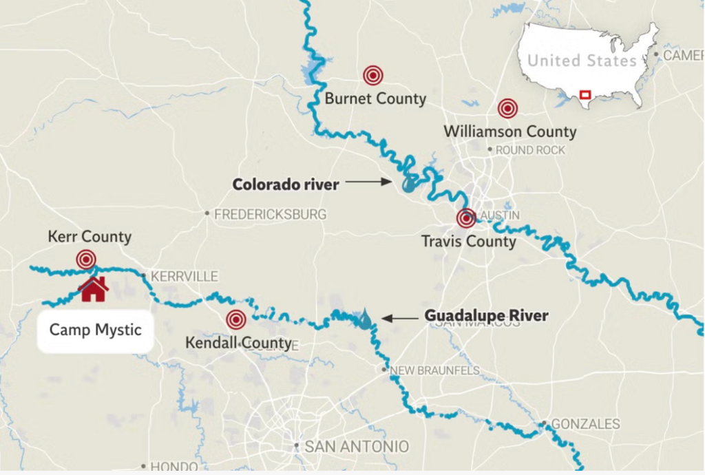 Over the July 3 and 4 weekend, torrential downpours triggered catastrophic flooding across Central Texas as the Colorado and Guadalupe rivers rapidly rose and overflowed their banks. In just three hours, the Guadalupe surged more than 20 feet, from 10 cubic feet per second to over 120,000, causing widespread devastation across Austin, San Antonio, and surrounding counties.
